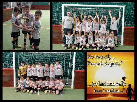 Kmf "21.oktobar" Kragujevac.Klikom na fotografiju možete pogledati 10-to minutni nastup naših dečaka u hali "Jezero" pred više hiljada gledalaca.Pehari,medalje i diplome - nagrade su za dečake naših ekipa koji pružaju sjajne igre u dečijim ligama malog fudbala i na turnirima.